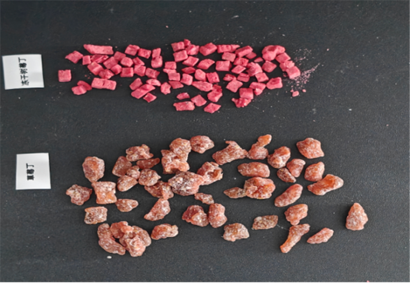 初步測(cè)試實(shí)驗(yàn),采集草莓丁和凍干樹莓丁樣品